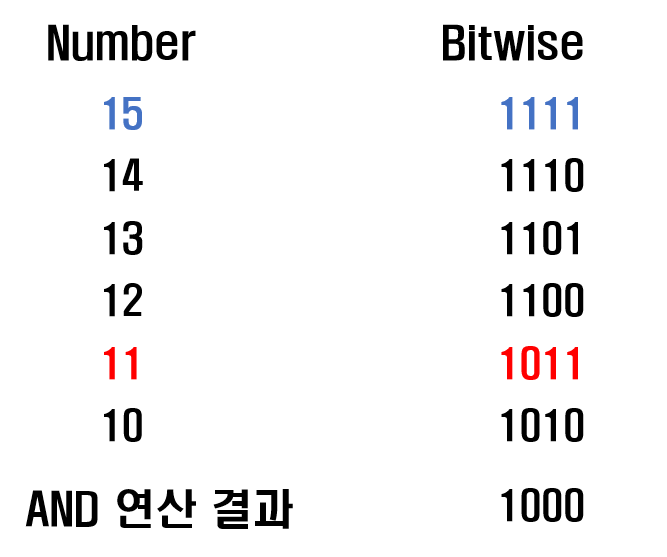 이 경우, Bitwise의 자릿수가 바뀌는 구간이 생기게 되고 이 구간에서 AND 연산은 반드시 0이 됩니다.